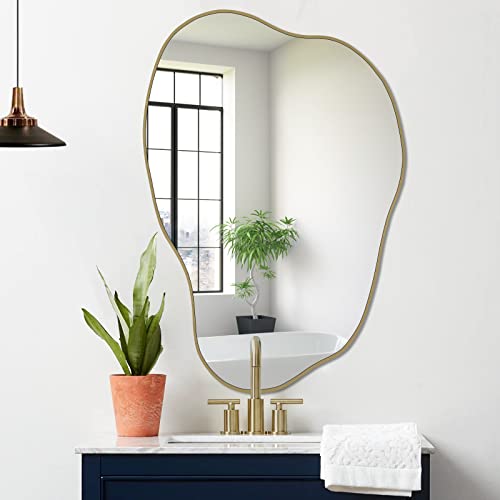 DAOYIJIAJU Miroir mural asymétrique en forme de nuage doré, miroir mural unique de forme irrégulière, miroir moderne ondulé sans cadre pour salon, salle de bain, chambre à coucher, entrée, 76,2 x 68,1
