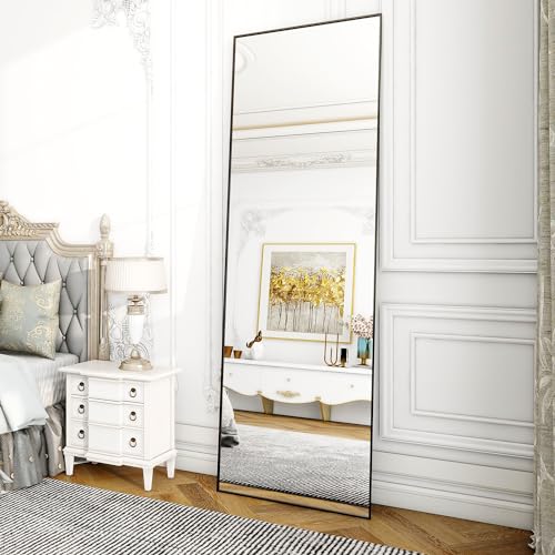 Koonmi Miroir sur Pied, 140 x 40 cm, Grand, Miroir Pleine Longueur, avec Cadre en Aluminium, pour Chambre à Coucher, Salon et Salle de Bain, Noir
