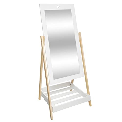 DRW Miroir sur Pied avec Porte en PS avec Cadre Miroir Blanc 40,5 x 38 x 161 cm, INT. 26 x 110 cm