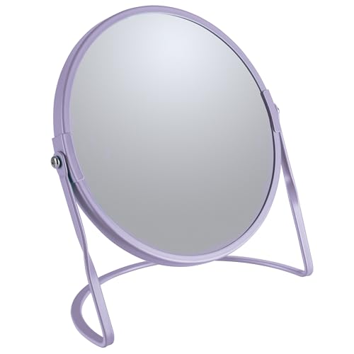 Spirella - Miroir grossissant sur Pied Akira - Acier Robuste - Double Face avec Grossissement x5 et Miroir Classique - Pivotant à 360° - Lavande