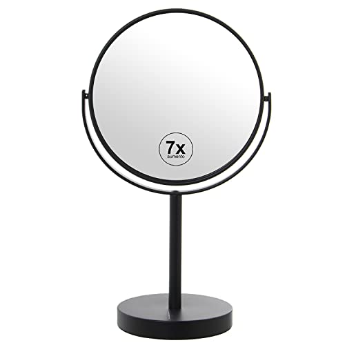 DRW Miroir avec Pied Rond avec 7 grossissements en métal Noir 18x12x33cm