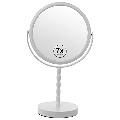 DRW Miroir avec Pied Rond avec 7 grossissements en métal Blanc 18x12x33cm
