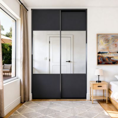 Porte de placard coulissante avec miroir noir mat profil noir GoodHome Arius H. 248,5 x L. 92.2 cm + amortisseurs