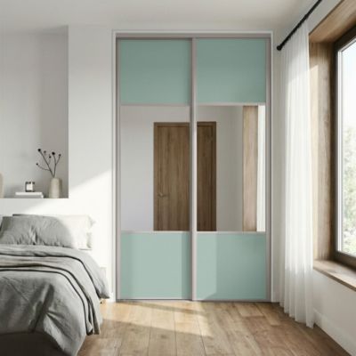Porte de placard coulissante avec miroir vert de gris profil blanc GoodHome Arius H. 248,5 x L. 92.2 cm + amortisseurs