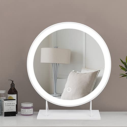 Miroir Maquillage LED, Miroirs de Table LED Lumières Miroir Lumineux, Miroir Éclairé Rond pour Chambre à Coucher, Salle de Bain, Salon de Beauté et Coiffeuse (50cm, Blanc / 3 Types de lumières)