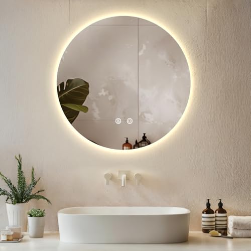TecTake® Miroir Salle de Bain Rond éclairage LED intégré, Miroir Coiffeuse à LED, 3 Couleurs de lumière réglables, Fonction mémoire, Anti-buée, Idéal Salle de Bain, Coiffeuse, Makeup Mirror, Ø 80 cm