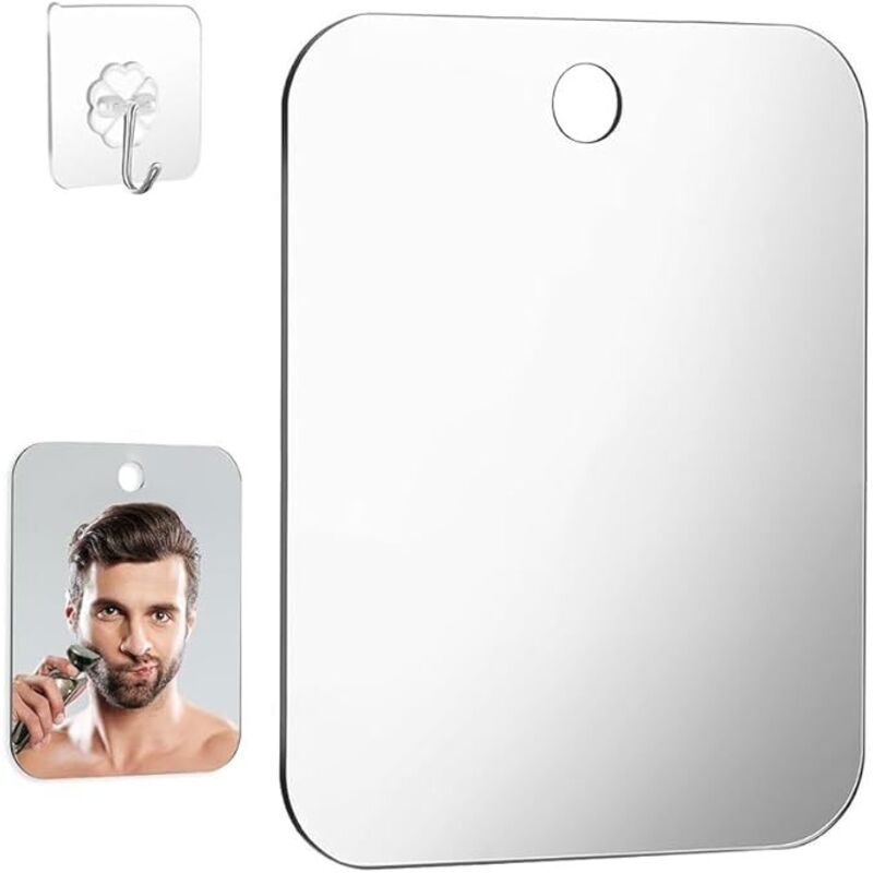 Grand miroir de douche antibuée (20 cm x 25 cm), miroir de douche anti-buée, miroir de rasage cosmétique pour la douche, miroir de douche sans cadre,