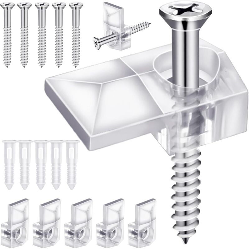 Lot de 20 clips de montage en plastique transparent pour miroir mural sans cadre avec 20 vis pour fixer le miroir