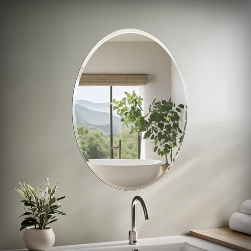 Villacola Miroir Mural Ovale sans Cadre pour Salle de Bain avec Bords biseautés pour évier, Chambre à Coucher, Coiffeuse, entrée 50,8 x 71,1 cm