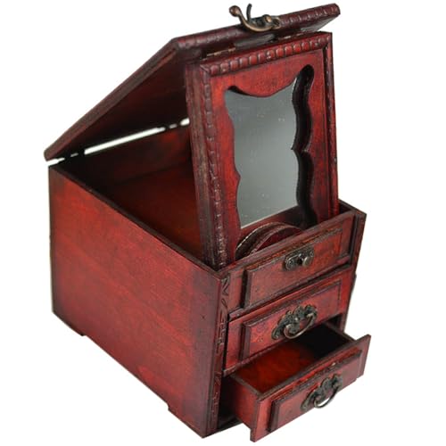 VINTORKY Boîte à Bijoux Organisateur de Bijoux Ancien avec Miroir Style Chinois en Bois la Poussière, pour et Occasions Spéciales