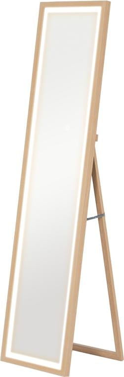 Miroir pleine longueur Fortuna Lai 40 x 160 cm Miroir sur pied avec éclairage LED, 3 couleurs de lumière, miroir mural avectactile, miroir au sol pour chambre à coucher, salon, chêne