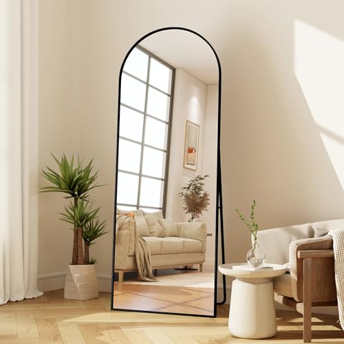 PexFix Miroir de Sol Moderne Pleine Longueur avec Support sur Pied, Miroir Mural arqué pour Chambre à Coucher, 180,3 x 78,7 cm, Noir