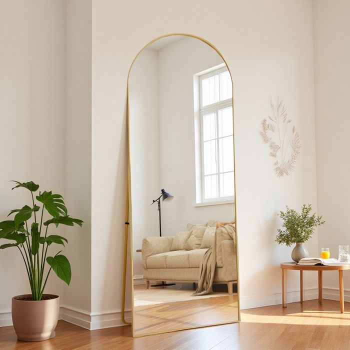 Miroir Mural Arqué Penché ou Suspendu 164 x 54 cm Grand Miroir sur Pied pour Chambre à Dressing Salon Couloi Doré