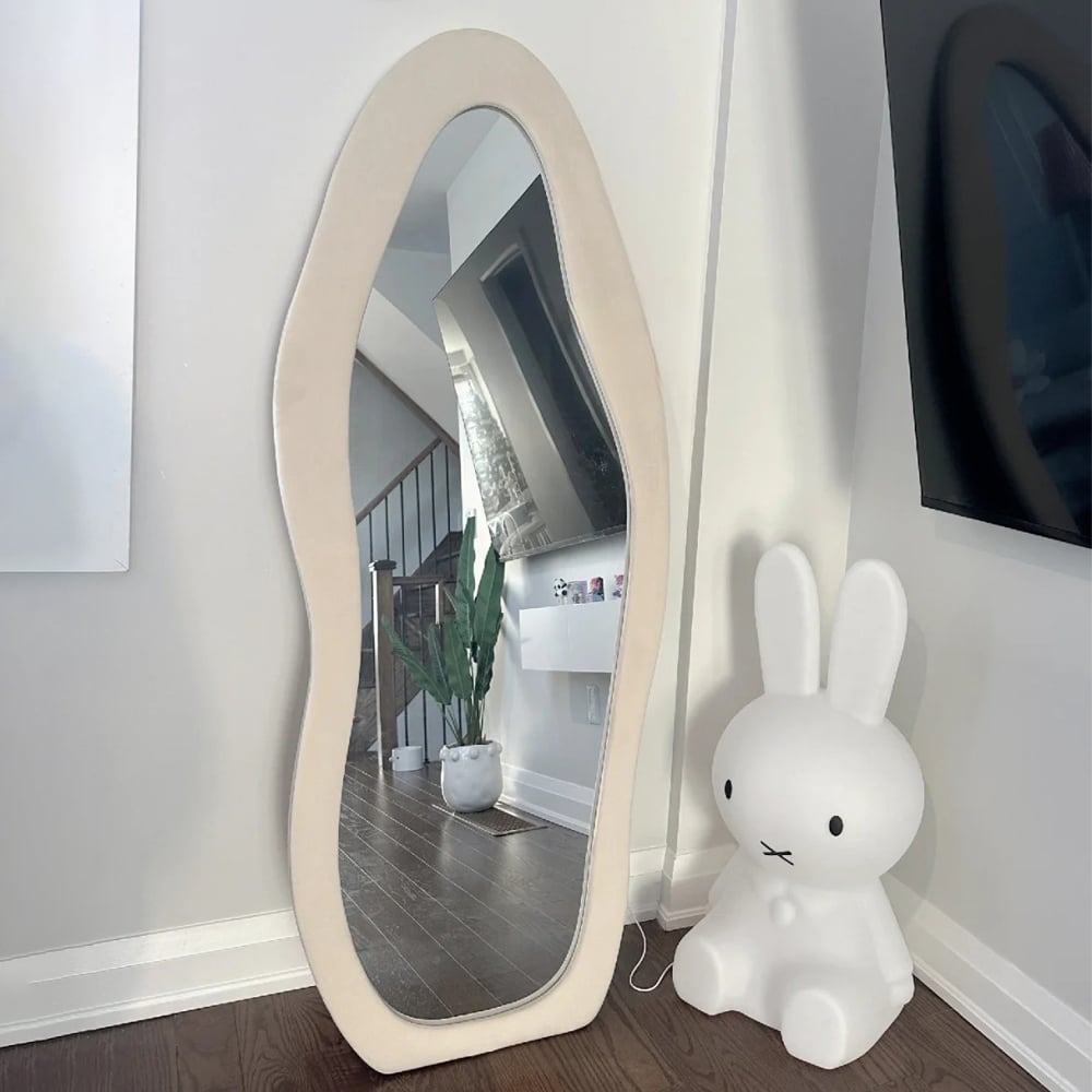 Aneutr Miroir sur Pied irrégulier, 160 x 50 cm, Miroir asymétrique, Miroirs Pleine Longueur avec Support en métal, Miroir Mural sur Pied pour Chambre, Salon et Entrée (Blanc, 160L x 50l cm)