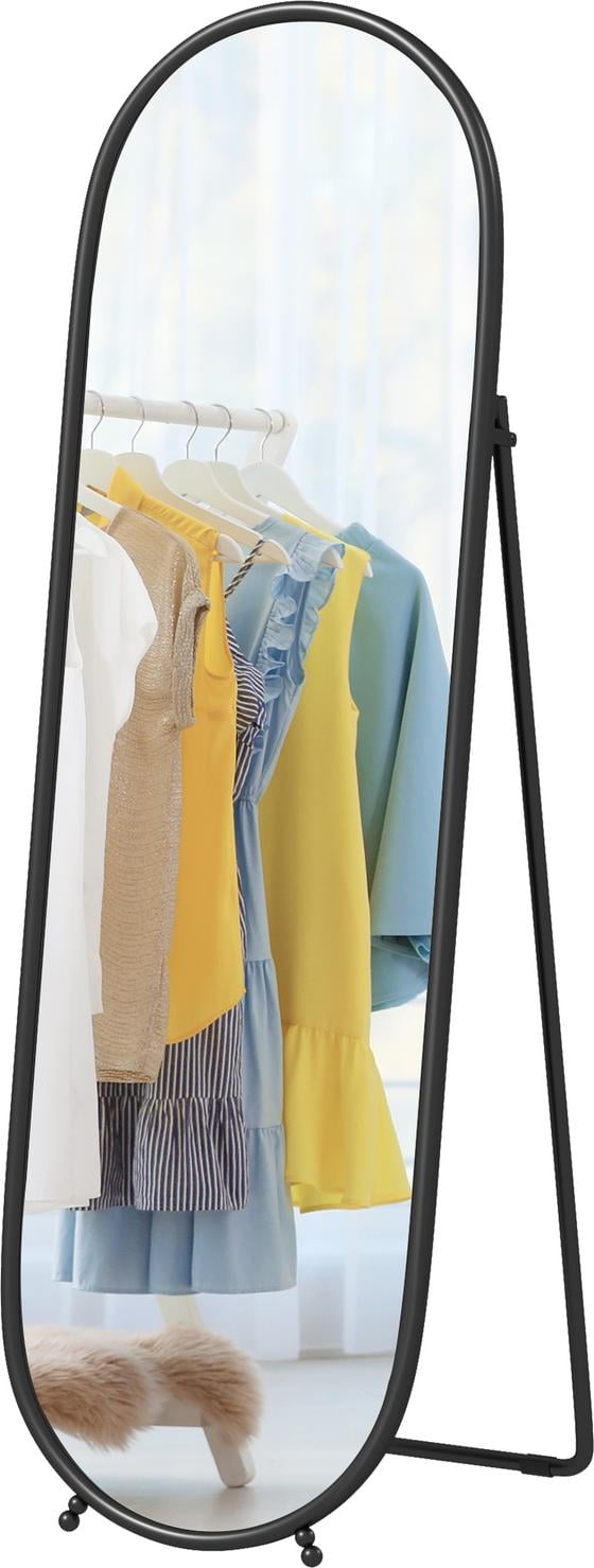 Miroir intégral, 160 x 40 cm miroir mural avec support, cadre métallique, miroir ovale sur pied pour salon, chambre, noir |