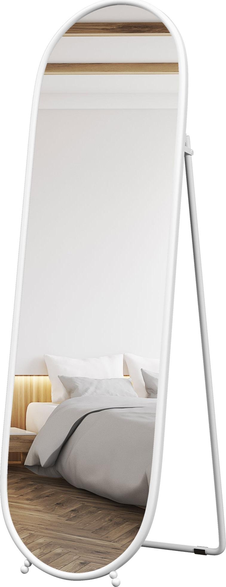 Miroir intégral, 160 x 40 cm miroir mural avec support, cadre métallique, miroir ovale sur pied pour salon, chambre à coucher, blanc |