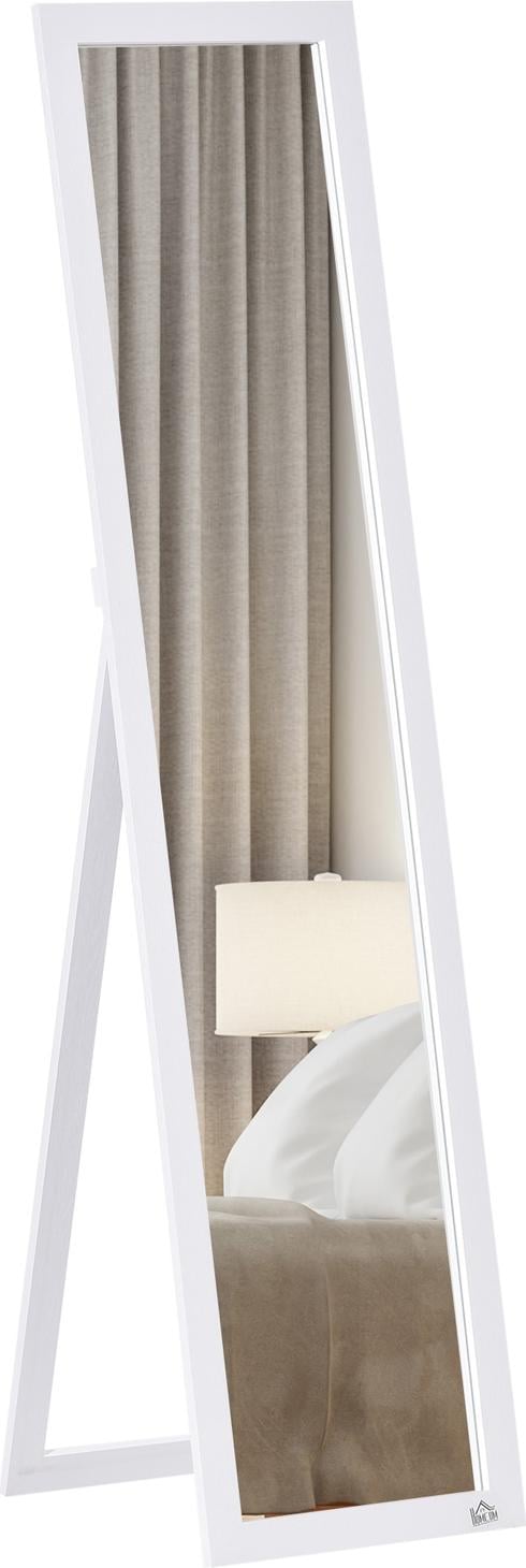 HOMCOM Grand Miroir Pleine Longueur rectangulaire, 37 x 160 cm - Miroir sur Pied ou Mural - pour Chambre à Coucher, Salon et Dressing, Bois Aspect Blanc