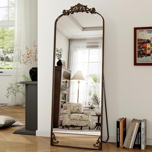 Koonmi Miroir sur Pied Vintage Pleine Longueur, 52 x 163 cm, incassable, Magnifique Miroir de Corps au Sol avec Beau processus de Gravure rétro pour Chambre à Coucher, Couloir, Noir