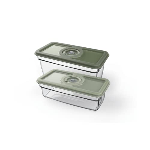 AEG AVFB1 Lot de 2 récipients de mise sous vide (1,6 et 1,0 litres, conservation des aliments et des nutriments, fonction date, passe au lave-vaisselle, congélateur, sans BPA, durable, vert)