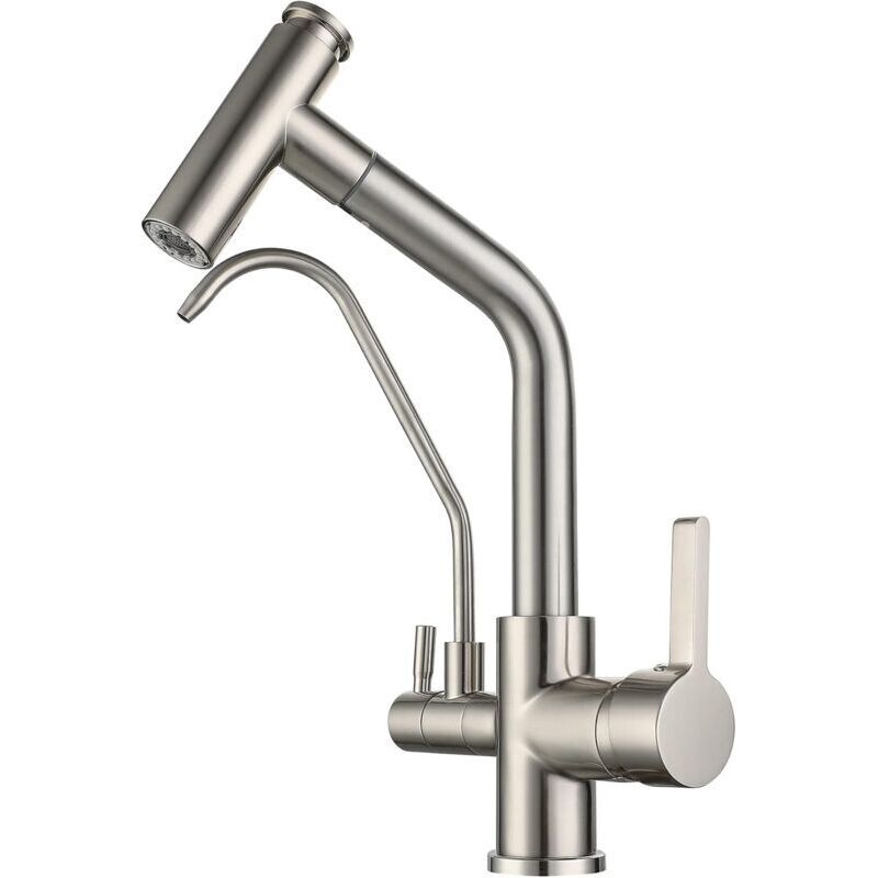 Robinet 3 Voies Cuisine Douchette Mitigeur Évier Avec 2 Becs Mitigeur Cuisine Pivotant 360 °,laiton Pour Évier De Cuisine à Eau Potable Compatible En
