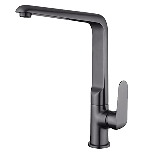LYGSWDB Robinets d'évier de Cuisine Mitigeur en Laiton à poignée Unique monté sur Le Pont Robinet d'eau Chaude Froide Robinet de lavabo Rotatif en Chrome Poli - Noir (Nero)