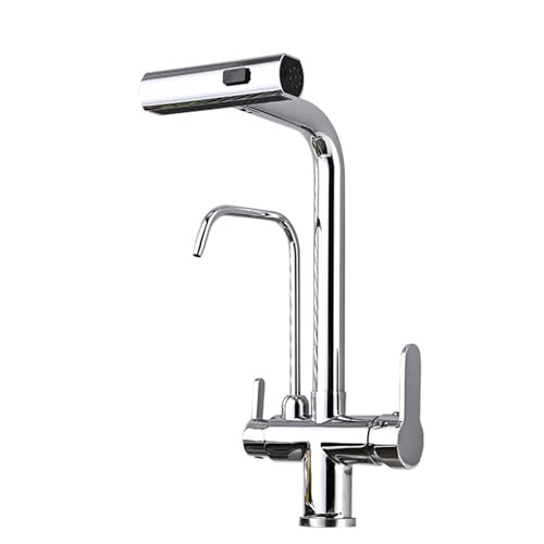 WQPMNYG Robinet de Cuisine 3 Voies avec Filtre à Eau, douchette extractible, 2 poignées, mitigeur de Cuisine en Laiton, Robinet d'évier chromé pivotant 1 Trou et Accessoire de Cuisine élég