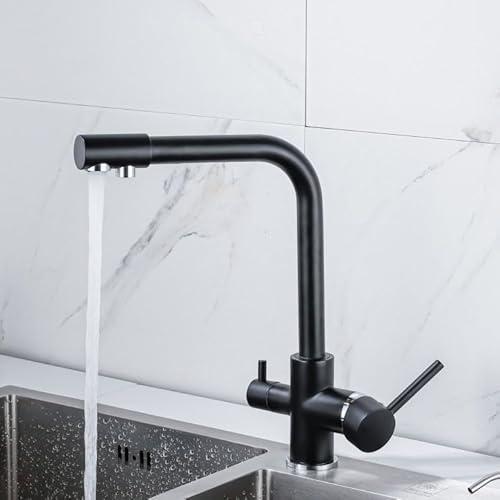 WQPMNYG Robinet de Cuisine pivotant à 360° avec Filtre à Eau Potable - Mitigeur de Cuisine en Laiton Noir à 3 Voies, idéal pour Un Usage Domestique, système de Purification d'eau, Design m