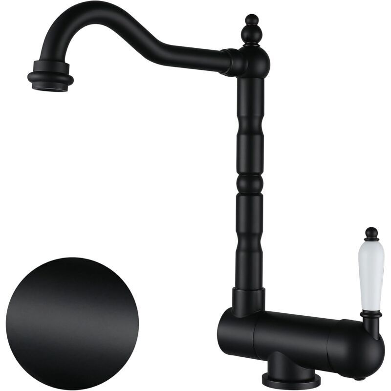 Robinet de cuisine à levier unique cuisine et salle de bain antique vintage mitigeur cuisine classique en laiton (noir)