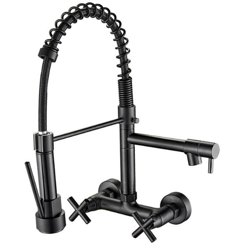 Robinet Mural Cuisine, Mitigeur Cuisine Laiton Pivotant Eau Froide et Chaude Robinet de Cuisine-Noir
