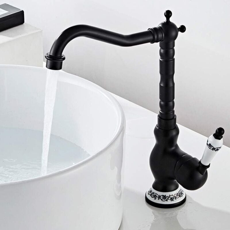 Robinet Noir Antique, mitigeur de Cuisine en Laiton, Eau Froide et Chaude Disponible, Robinet d'évier de Salle de Bain,A