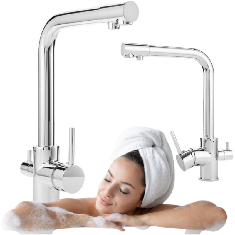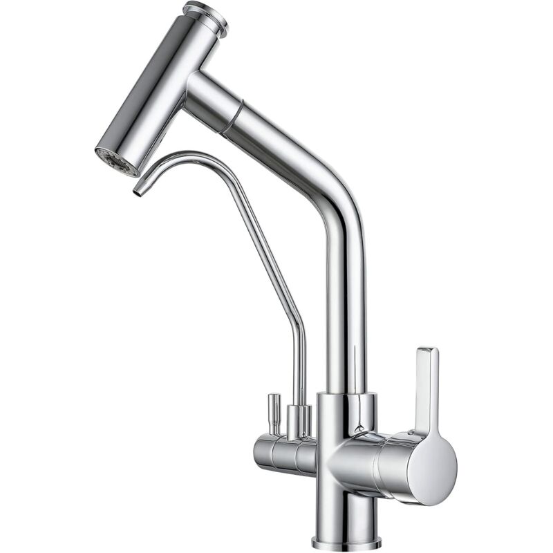 CMBSSTFC Robinets 3 Voies pour Filtre d'évier de Cuisine, robinets de Cuisine, mitigeur d'évier, Bec pivotant avec 2 poignées, mitigeur de Cuisine en Laiton, chromé