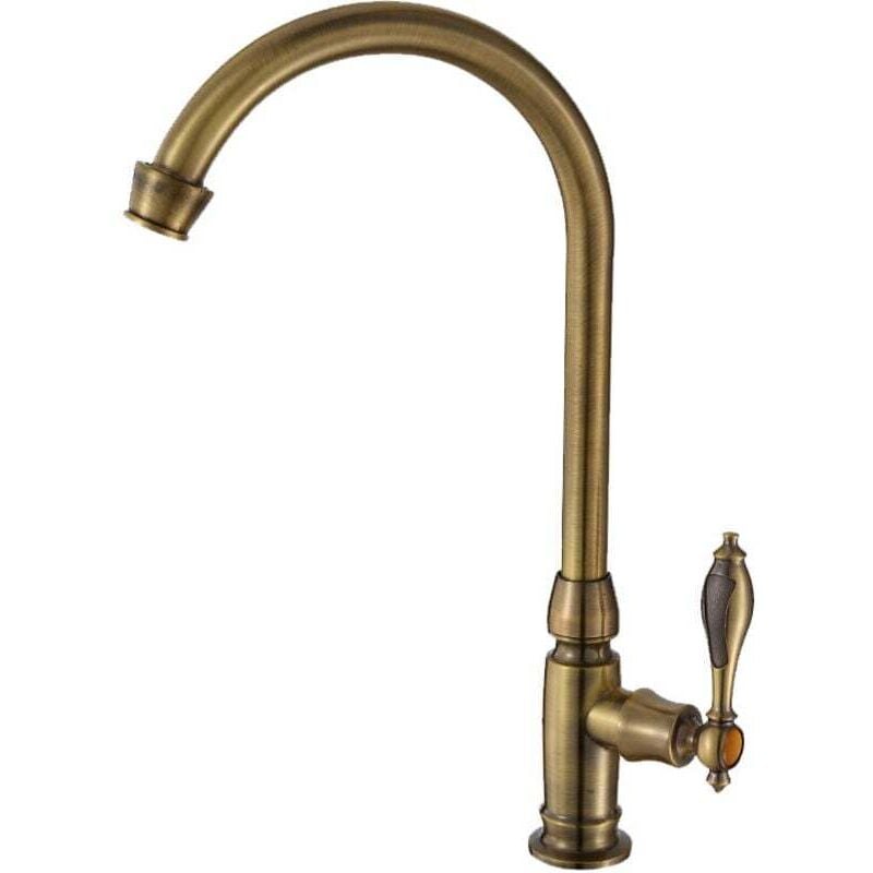 Robinet mitigeur de cuisine en laiton antique, style vintage.