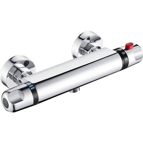 Mitigeur Thermostatique pour Douche, Murale Robinet Thermostatique de Douche avec Bouton Sécurisé à 38°C Anti-brûlure Mitigeur Douche Entraxe 150mm - Chromé
