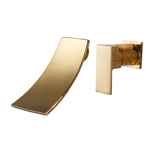 WIQUYBML Robinet mitigeur de lavabo mural doré – Robinet d'évier cascade avec poignée à levier unique en cuivre résistant aux éclaboussures d'eau chaude et froide pour salle de bain Design élégant