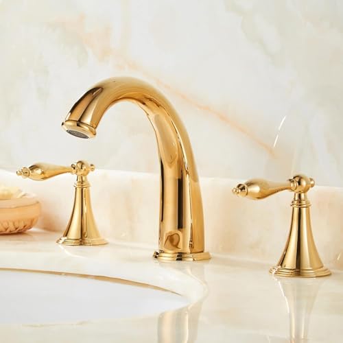 Mitigeur de lavabo rétro doré, Robinet de lavabo en Laiton Poli Or Poli, Robinet de Salle de Bain à Double poignée et entraxe Large