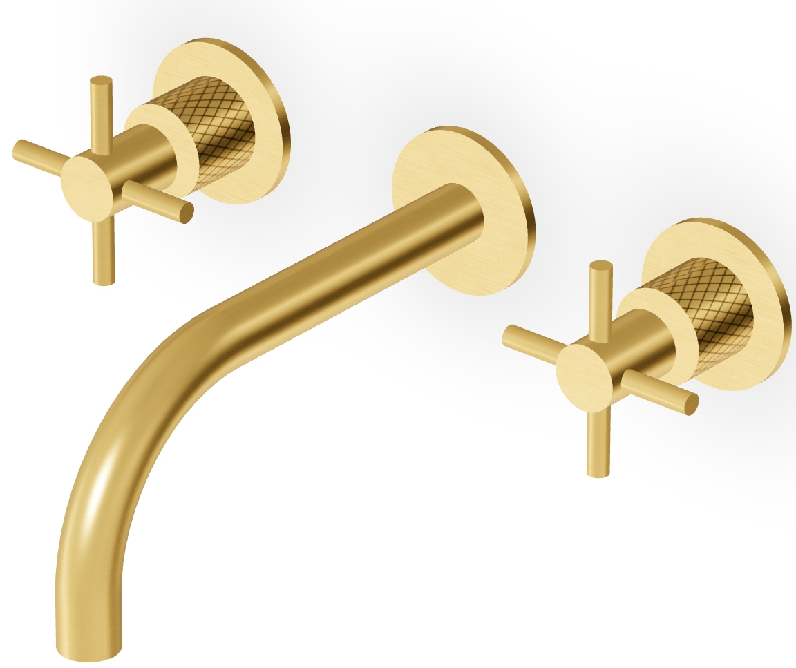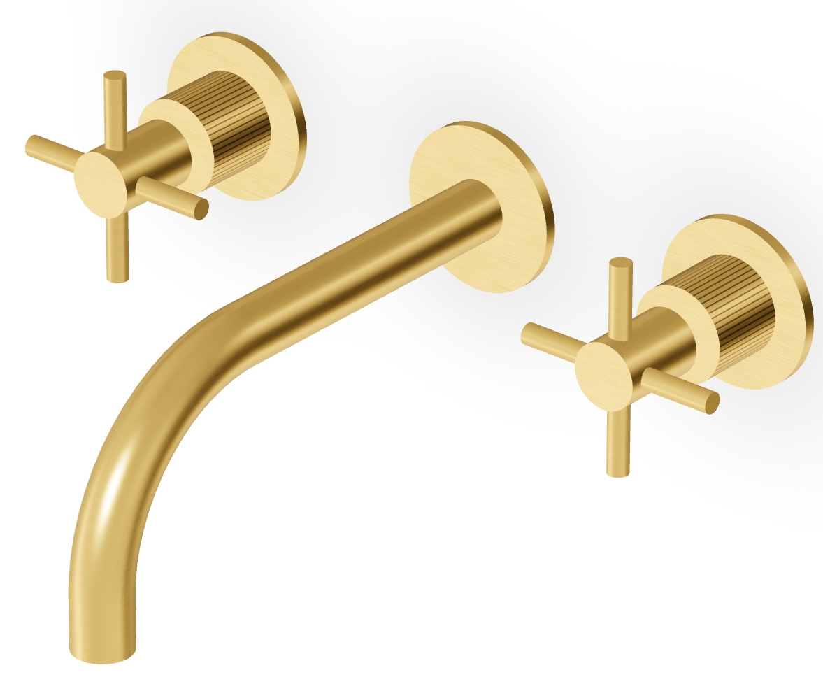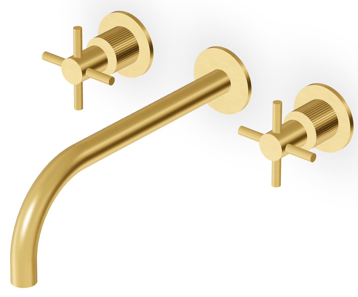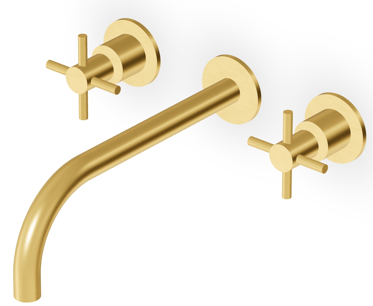 CMBSSTFC Mitigeur de lavabo Mural doré brossé avec Bec Chaud Froid, Fente de 20 cm