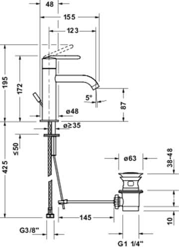 410 mm, Lavabo simple, Meubles/plan de travail