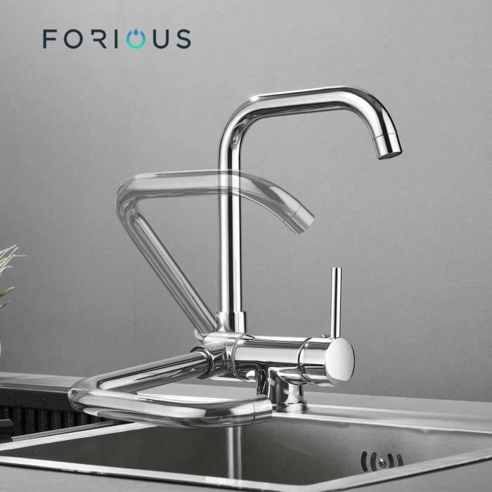 FORIOUS Robinet Cuisine Rabattable Mitigeur Cuisine Sous Fenêtre Mitigeur Evier Pivotante à 360°en Acier Inox 304 Chrome Poli