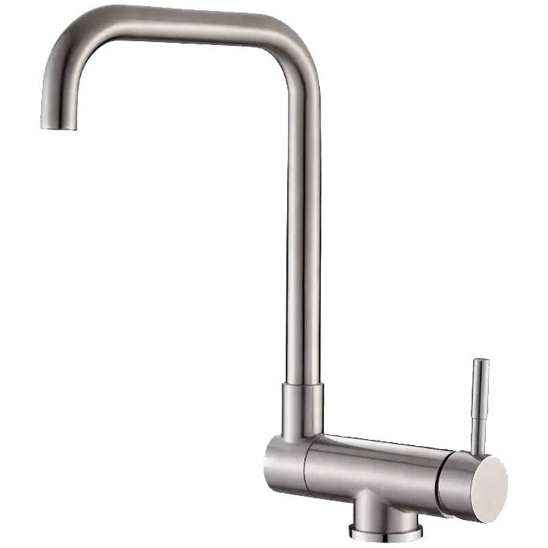 Mitigeur de cuisine rabattable, repliable sous fenêtre, bec haut pivotant 360°, aérateur démontable, acier inoxydable 304 brossé