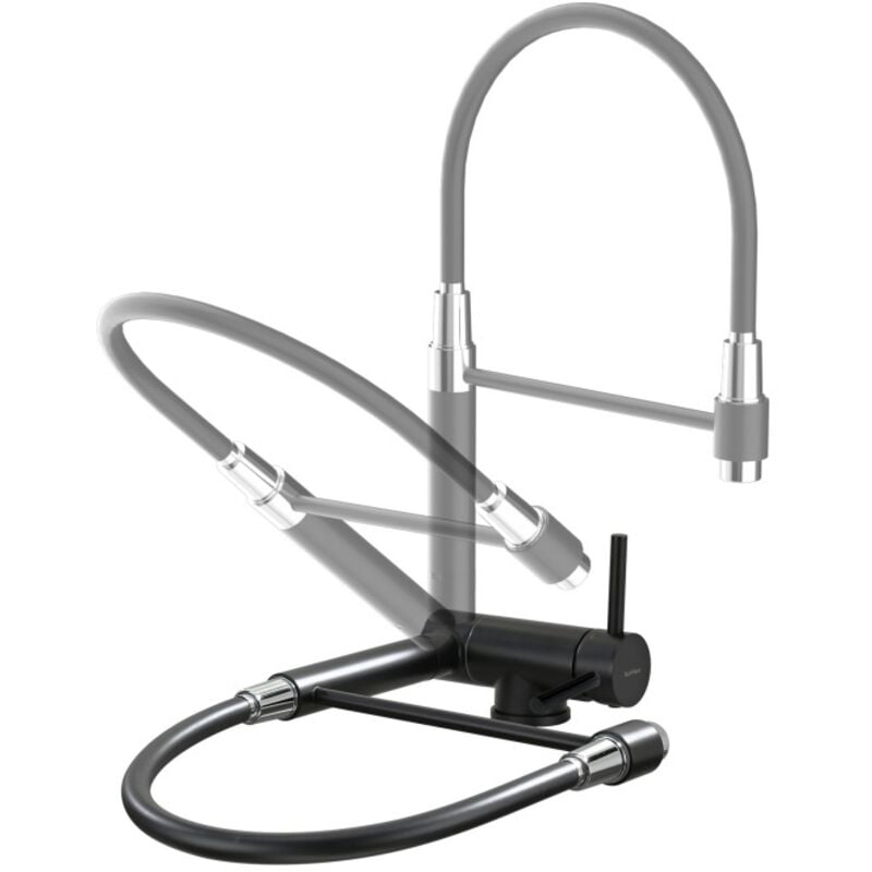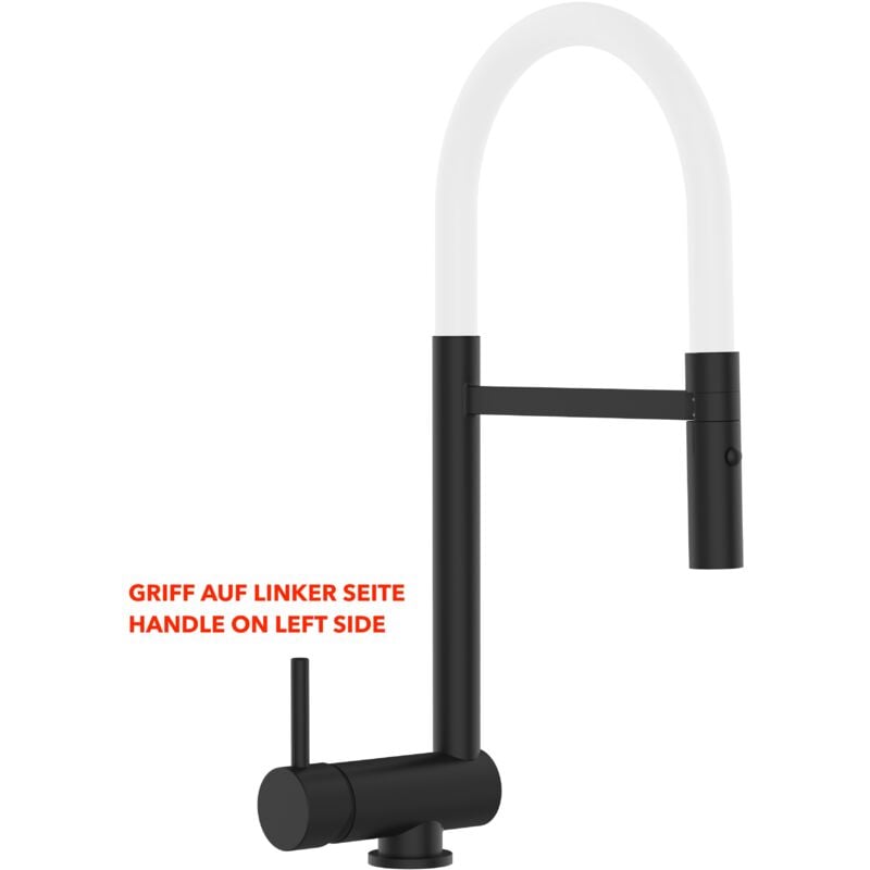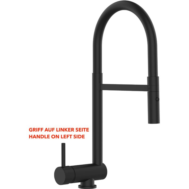 Mitigeur de cuisine rabattable robinet sous fenêtre 6cm, poignée à gauche, avec bec pivotant 360° et douchette 2-jets détachable, noir mat VZSUL11022