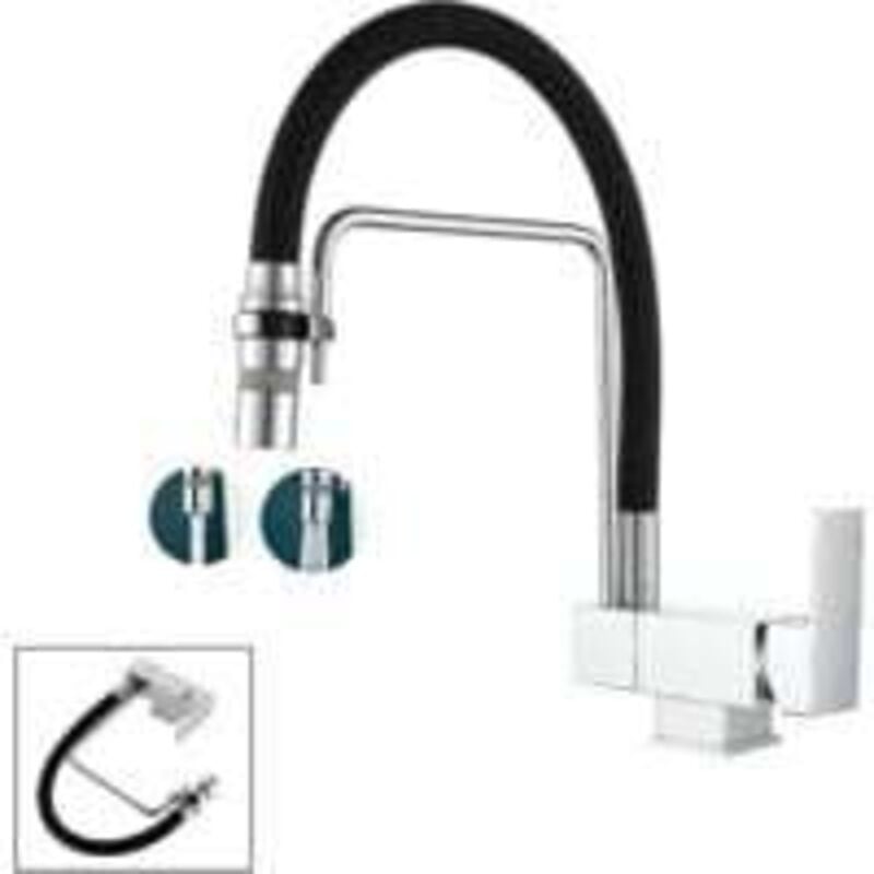 Vizio - Robinet de Cuisine Mitigeur rabattable sous fenetre 60mm chrome robinet bec noir orientable et douchette 2 jets detachable
