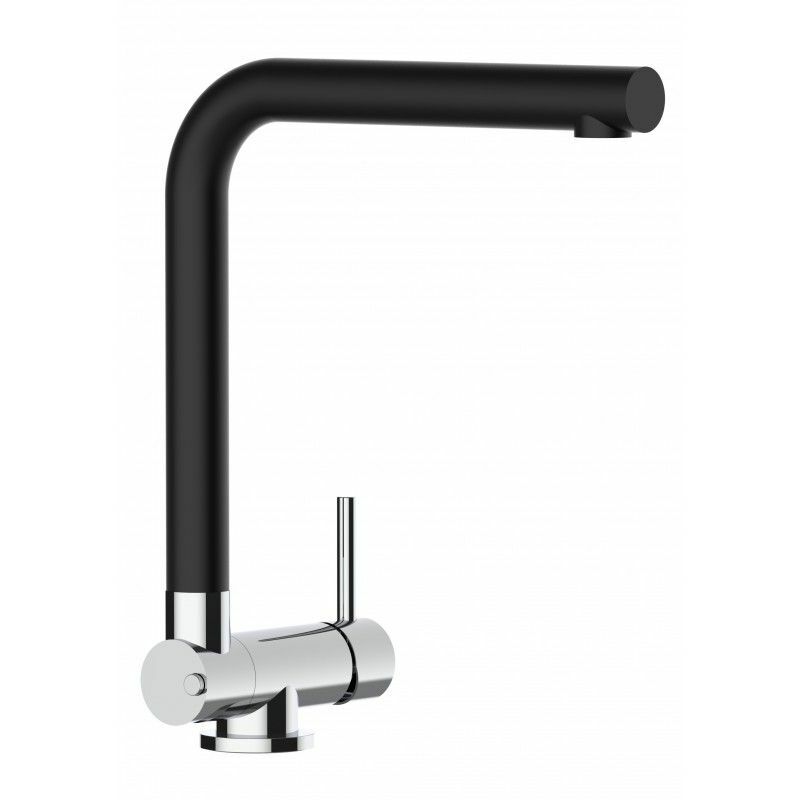 Robinet de Cuisine Mitigeur rabattable sous fenetre 60mm avec poignée gauche chrome robinet bec quartz noir pivotant 360 VIZIO