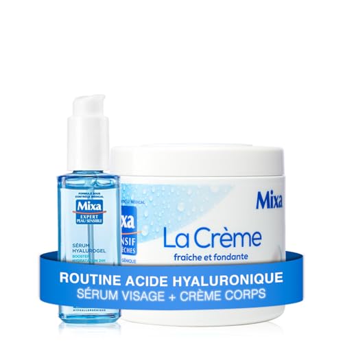 Mixa Expert Peau Sensible – Coffret Routine 2 Produits à l’Acide Hyaluronique Pur – Sérum Hyalurogel 30ml + La Crème Fraîche et Fondante 400ml – Visage & Corps – Hydratation 24h – Hypoallergénique