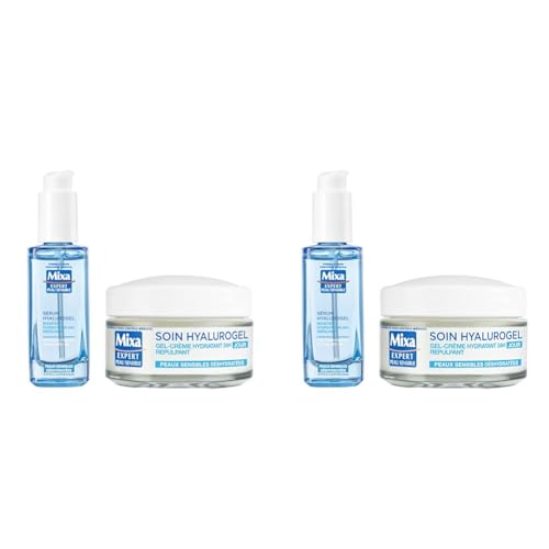 Mixa Expert Peau Sensible - Hyalurogel de routine - Booster Hydratation Répulpant 24 heures - Acide Hyaluronique Pur, Vitamine B3 + B5, Sérum + Soin (Lot de 2)