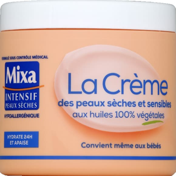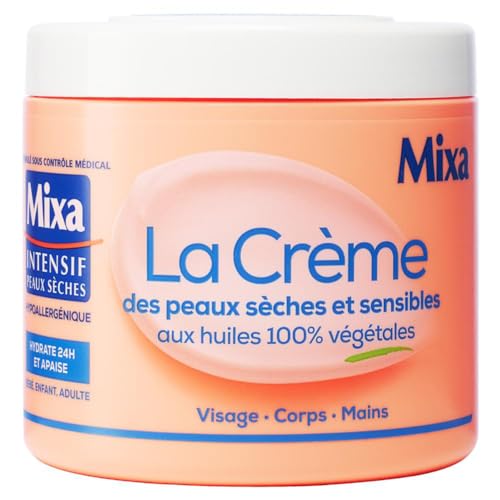 Mixa Intensif Peaux Sèches - La Crème des Peaux Très Sèches et Ternes - Multi Usages Visage, Corps, Mains, Pieds - Nourrit 48h et Ravive l'Éclat - Pénétration Rapide - Hypoallergénique - Pot 400 ml?