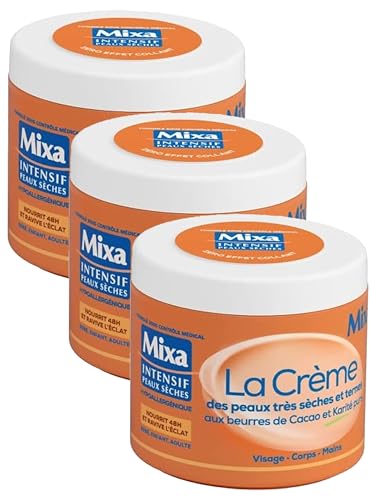 Mixa Intensif Peaux Sèches - La Crème des Peaux Extra-Sèches - Multi Usages Visage, Corps, Mains, Pieds - Nourrit 48h et répare - Pénétration Rapide - Hypoallergénique - Pot 400 ml (Lot de 3)