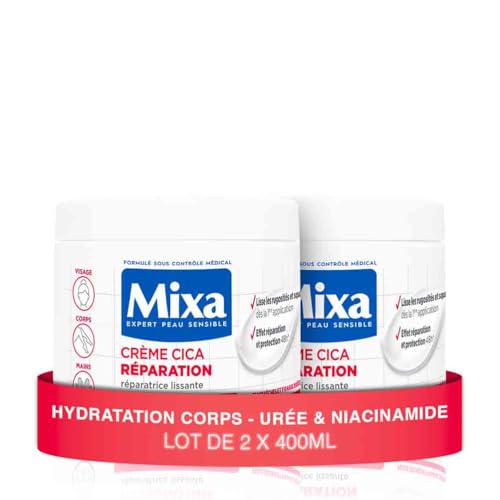 Mixa Expert Peau Sensible - Crème Cica Réparation - Réparation Effet Longue Durée - Peaux Très Sèches et Rugueuses - Visage, Corps, Mains - Hypoallergénique - 400ml - Lot de 2
