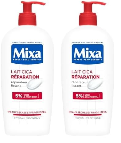 Mixa Expert Peau Sensible - Lait Cica Réparation - Réparation Effet Longue Durée - Peaux Sèches et Rugueuses - Hypoallergénique - 400 ml (Lot de 2)