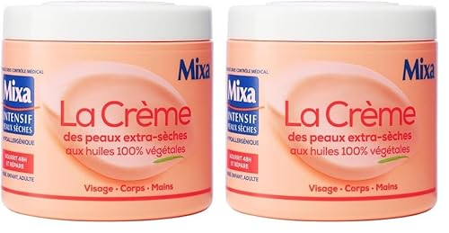 Mixa Intensif Peaux Sèches - La Crème des Peaux Extra-Sèches - Multi Usages Visage, Corps, Mains, Pieds - Nourrit 48h et répare - Pénétration Rapide - Hypoallergénique - Pot 400 ml (Lot de 2)