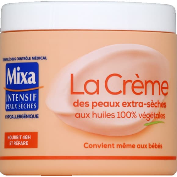 Mixa Intensif Peaux Sèches - La Crème des Peaux Extra-Sèches - Multi Usages Visage, Corps, Mains, Pieds - Nourrit 48h et répare - Pénétration Rapide - Hypoallergénique - Pot 400 ml